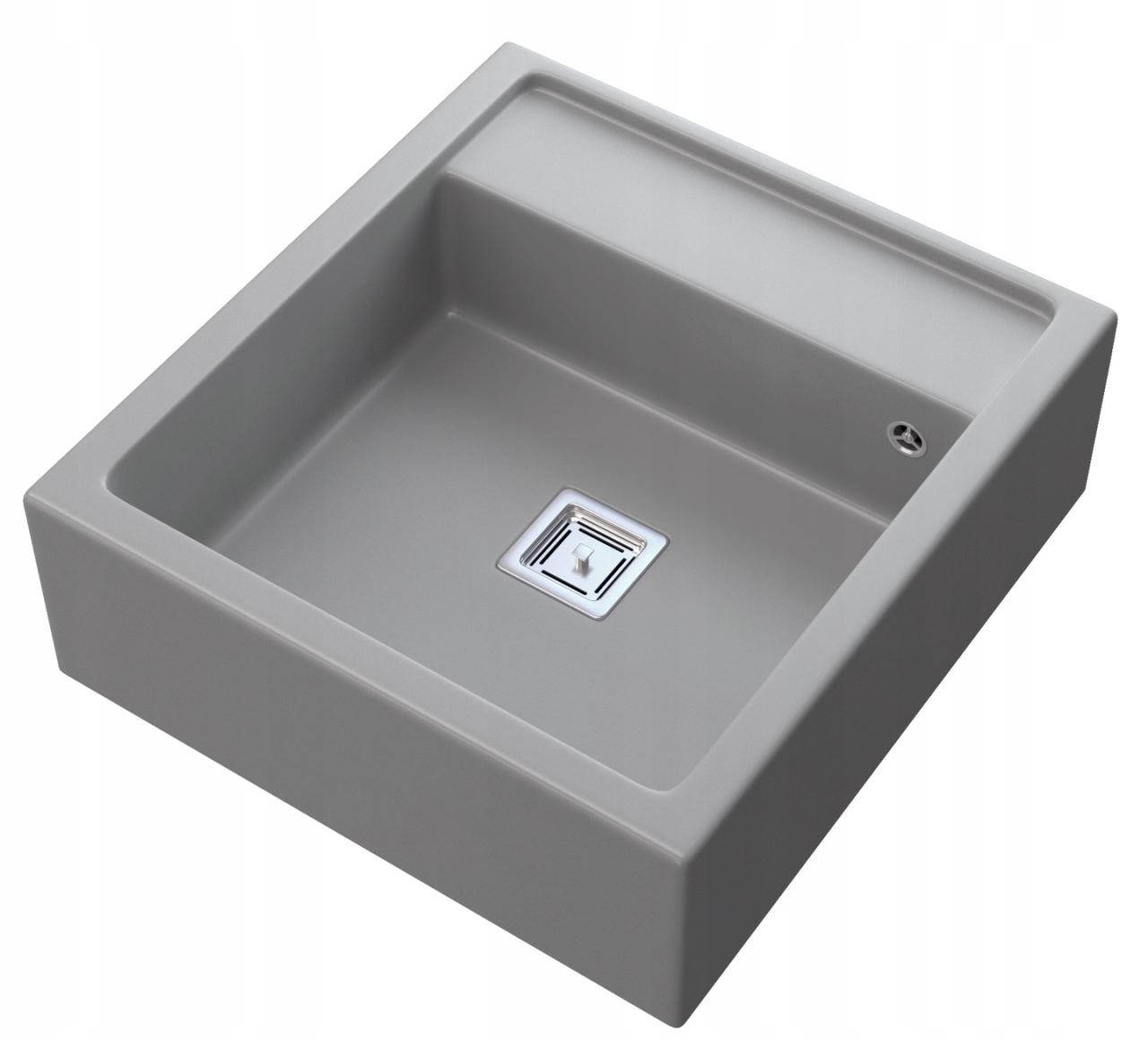 Graniteland Arno Granitowy Szary Zlewozmywak do zabudowy 582x620mm z kwadratowym korkiem ze stali nierdzewnej 1208970605