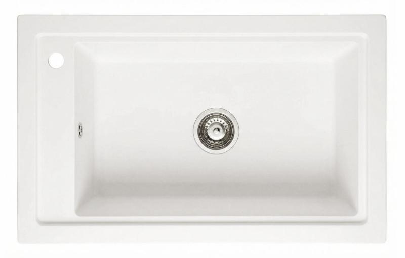 Graniteland Magra Granitowy Biały Zlew do montażu 686 x 427 mm z otworem na kran i korkiem ze stali nierdzewnej 1208970614