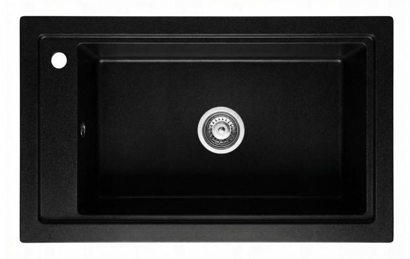 Graniteland Magra Granitowy Zlew czarny do montażu na wierzchu 686 x 427 mm z otworem na baterię i stalową zatyczką 1208970616