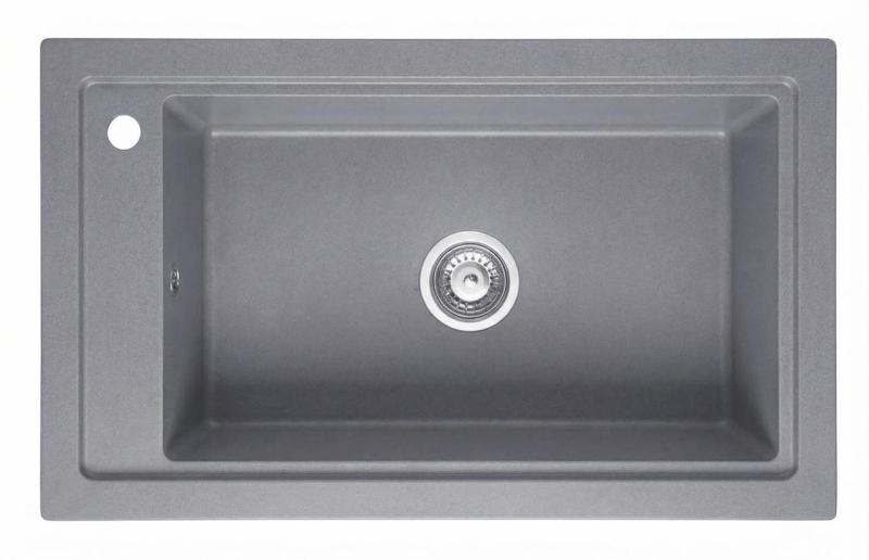 Graniteland Magra Granitowy szary zlew nawierzchniowy 686 x 427 mm z otworem na kran i stalowym korkiem 1208970618