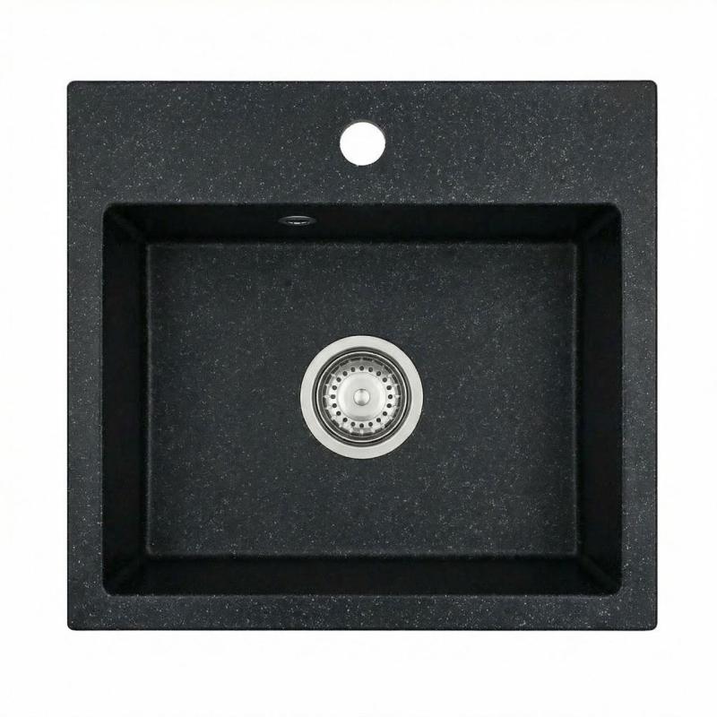 Graniteland Nera Granitowy Zlew 45x42 cm Wygląd ciemnego kamienia Instalacja ze stojakiem pod kran i stalową zatyczką 1208971432