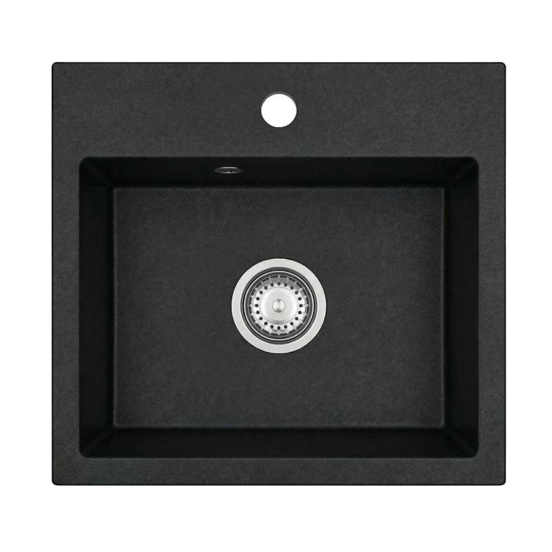 Graniteland Nera Zlewozmywak Granitowy 45x42 cm Czarny Nablatowy z Półką na Baterię i Korkiem ze Stali Nierdzewnej 1208969985