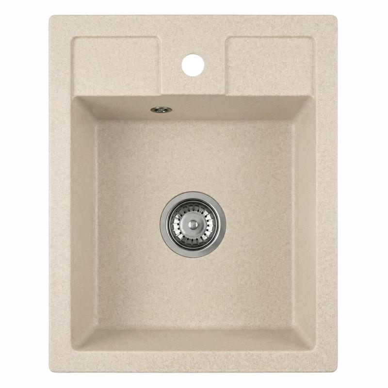 Graniteland Prest Granitowy beżowy zlew Tapwing z otworem na baterię, montowany na wierzchu 400x500mm z korkiem ze stali nierdzewnej 1208971422