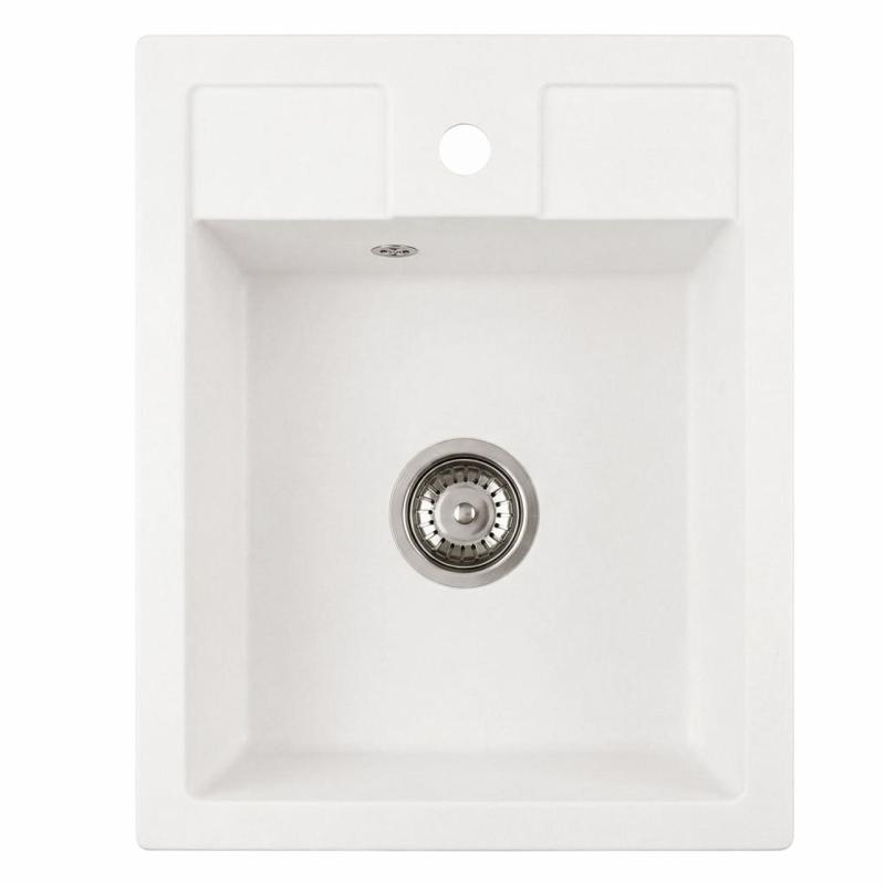 Graniteland Prest Granitowy biały zlew Tapwing z otworem na baterię, montaż na blacie 400x500mm z korkiem ze stali nierdzewnej 1208971424