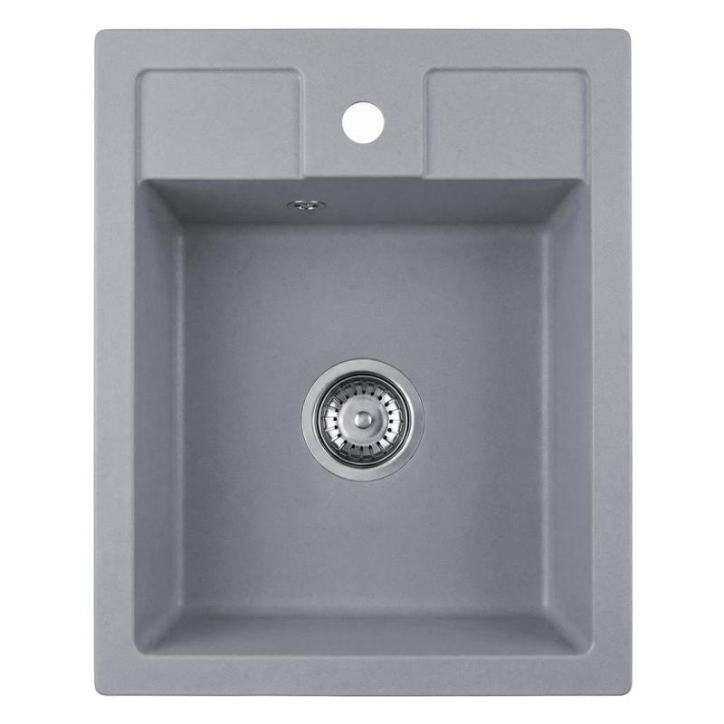 Graniteland Prest Granitowy szary zlewozmywak Tapwing z otworem na baterię nablatowy 400x500mm z korkiem ze stali nierdzewnej 1208971425