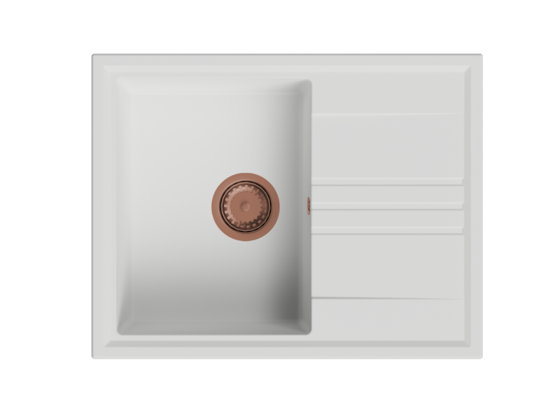 GraniteMy Vesi granitowy blatowy biały zlew 64x50cm z ociekaczem odwracalnym z miedzianą zatyczką 1208967301
