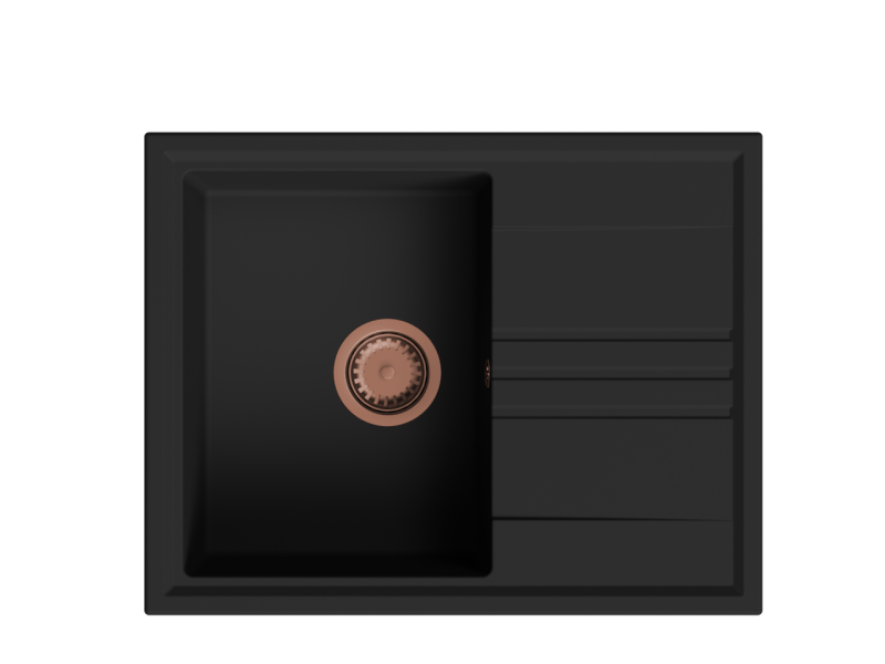 GraniteMy Vesi granitowy zlew do montażu na wierzchu, czarny 64x50cm ze zlewem, odwracalny z miedzianą zatyczką 1208967297
