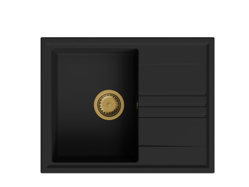 GraniteMy Vesi granitowy czarny zlew do montażu 64x50cm z ociekaczem odwracalnym z złotym korkiem 1208967296