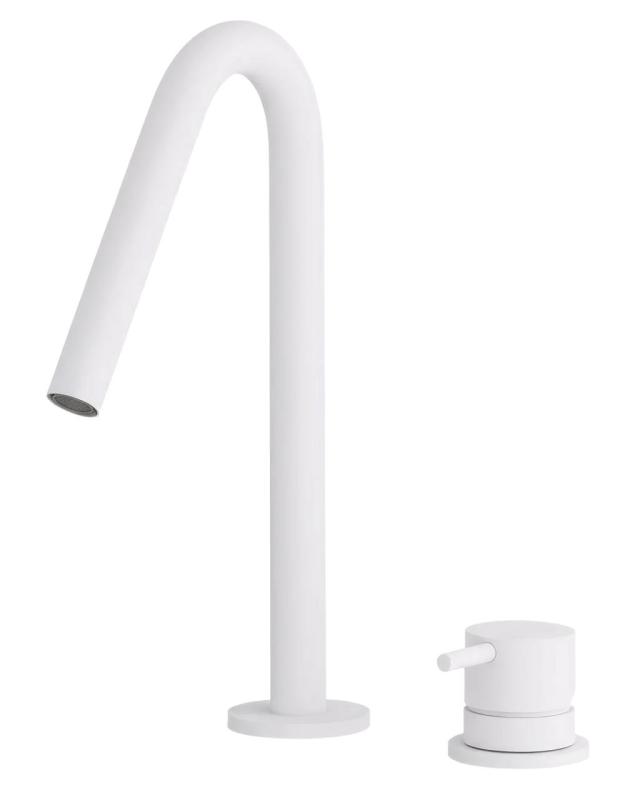Waterevolution Flow 2-otworowa bateria umywalkowa matowa biała z małym V 120 mm wylewką T1121VBR