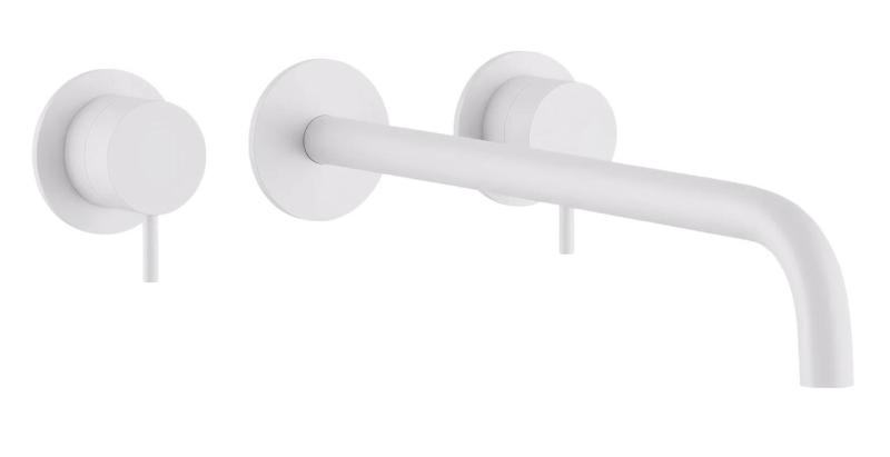 Waterevolution Flow 3-hole Built-in Washbasin Faucet Matte White with 21 cm spout T1163FBR-21