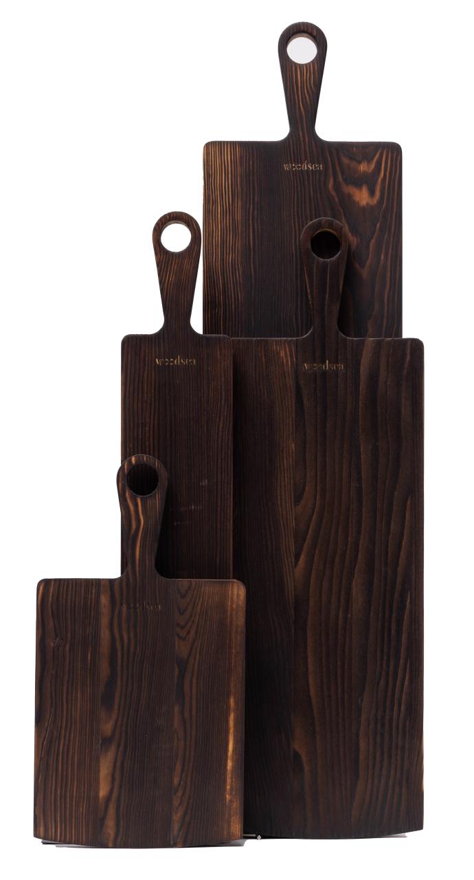 Woodsea Sosna Wypalana - Zainspirowane elegancją wysokich sosen, te deski łączą naturalne piękno z funkcjonalnością. Wykonane z wypalanego drewna sosnowego według tradycyjnych japońskich technik, są odporne na wodę i pomagają zachować ostrość Twoich noży. Dostępne w różnych kształtach i rozmiarach – idealne do krojenia lub podawania w stylu.